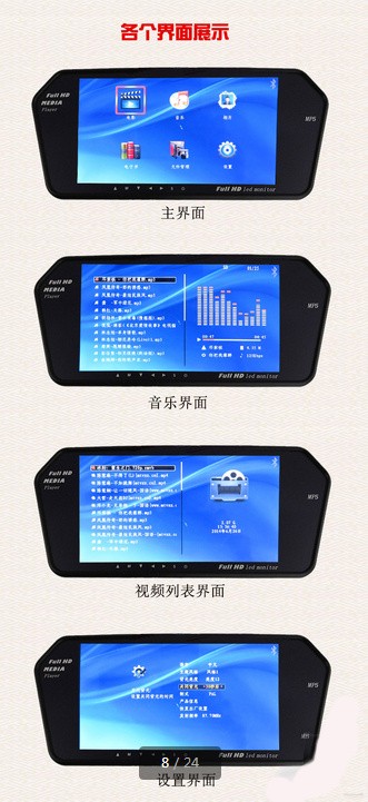 新款7寸MP5全格式后视屏